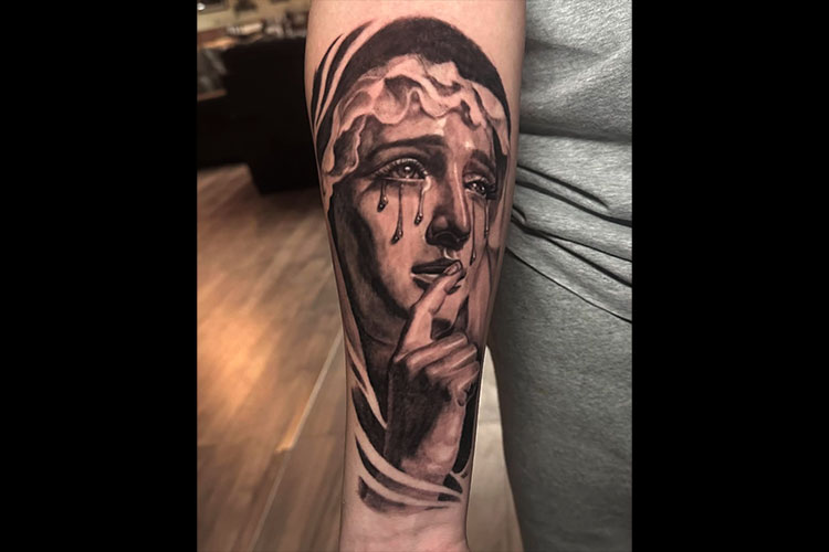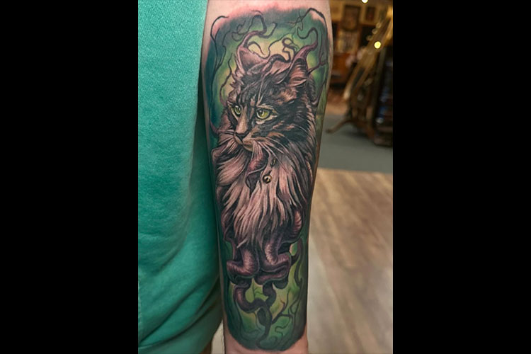 Trent Tieso is a Cedar Rapids–based tattoo artist with a fine art background in oil painting and pastels. He specializes in traditional, illustrative, neo-traditional, and realism, blending classical techniques with bold, modern tattoo design. His strong composition and rich color theory bring every piece to life.