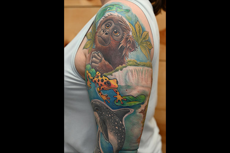 Known for her animal portraits, nature-inspired sleeves, literary themes, and expressive watercolor style, Charity creates tattoos that are both visually striking and deeply personal.