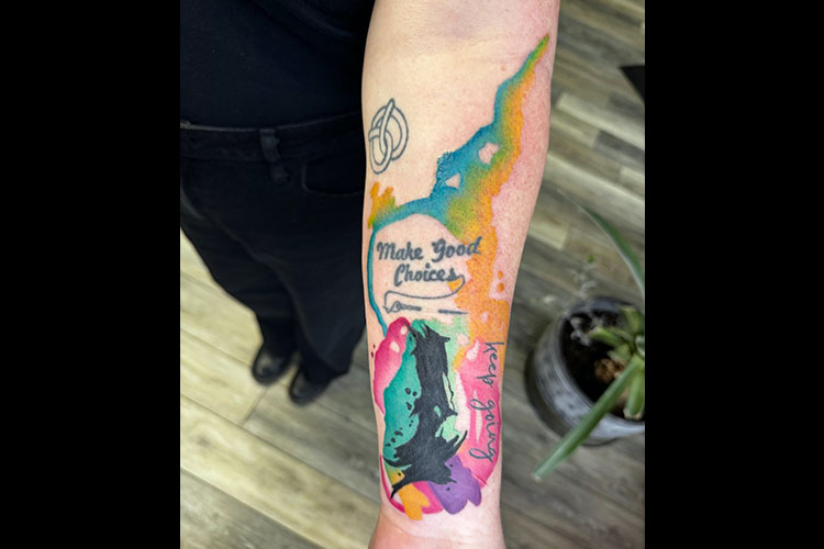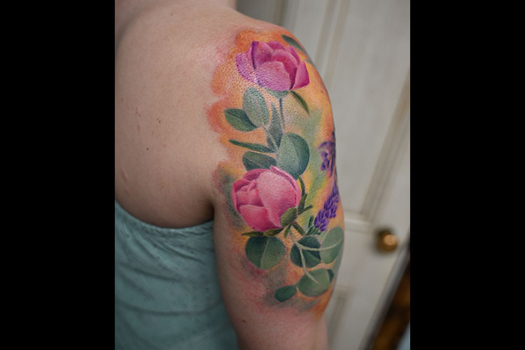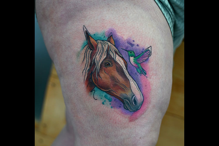 She specializes in custom watercolor tattoos inspired by wildlife, nature, and emotional storytelling. Each design begins as a hand-painted watercolor piece, allowing clients to leave with both a one-of-a-kind tattoo and the original artwork.
